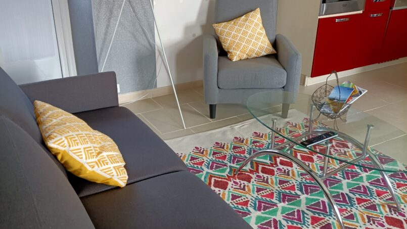 Cuisine équipée d’un four, d’un micro-onde, d’un lave-vaisselle, d’un réfrigérateur et congélateur, grille-pain, robot mixeur et batteur, bouilloire, machine à café, fer et table à repasser.