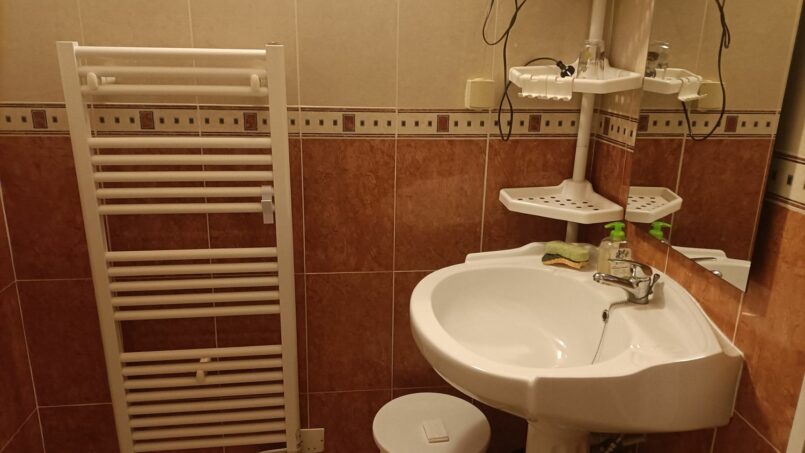 La buanderie avec machine à laver est commune avec les chambres d’hôtes une marche de 15 cm. machine à laver et séchoir electrique.