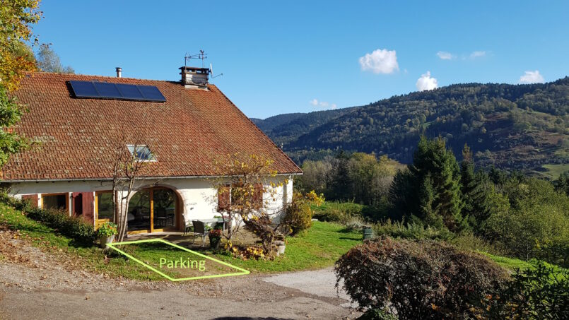 Gîte avec vue spectaculaire sur les montagnes, en pleine nature, dans le Parc Régional des Ballon des Vosges, idéalement situé.
