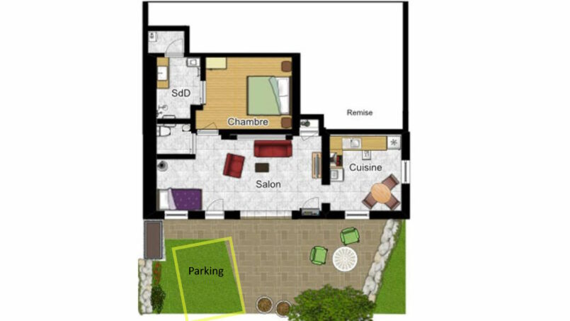 L’entrée, le parking et la terrasse sont totalement indépendants. Nous vivons sur le site
