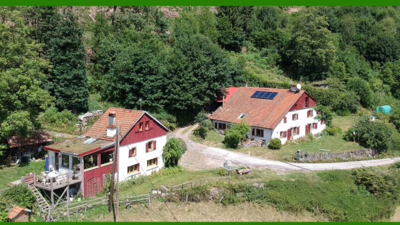 Remarque : une ancienne voie ferrée offre une surface plane dans la vallée et le sommet de la montagne a des voies relativement plates. Nous n’avons que des pentes autour de la maison car nous sommes une ferme à flanc de montagne.